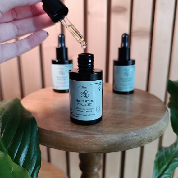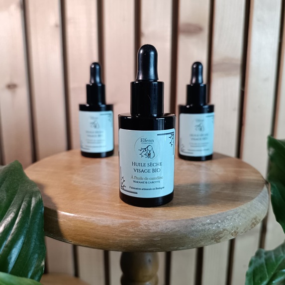 - L’huile de caméline : Huile anti-âge (très riche en oméga 3,6 et 9), régule le sébum, lutte contre l’apparition des ridules liées à la déshydratation, apporte éclat et souplesse à la peau.